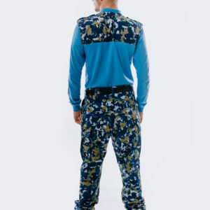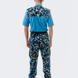 Produsul este confectionat din tesatura ripstop imprimat in culori mozaic pentru forte terestre, forte aeriene, forte navale , compozitie fibroasa amestec 50%nylon+50%cotton, greutate specifica de circa 220 gr/m2. Materialul de confectie este o tesatura ranforsata, are rezistente foarte ridicate la rupere si sfasiere. Materialul are comportare forta buna in purtare, rezistenta foarte mare la abraziune, are o foarte buna stabilitate dimensionala la spalare, o foarte buna stabilitate coloristica la spalare, calcare, frecare, lumina. Imprimeul tesaturii are comportament specific in infrarosu,interval specific armatei romane. Tesatura are tratament antimicrobian.